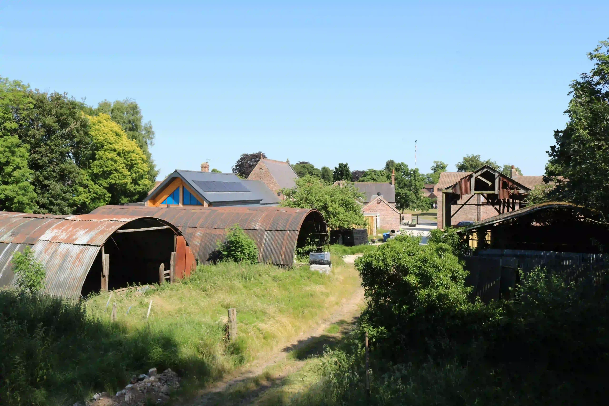 The site for our new dwelling was located in the rear yard—a semi-open space historically known as a croft field. Over the decades, this yard had accumulated several derelict mid-twentieth-century agricultural structures. Among these were two half-round Nissen hut-type shelter barns from the 1950s, which likely represented repurposed WWII Nissen Hut frames.